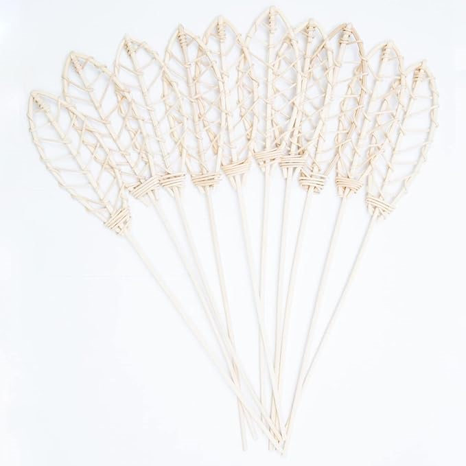 一つ一つ手作業で編み込まれた、天然ラタンのリーフ型、リードディフューザー スティック。